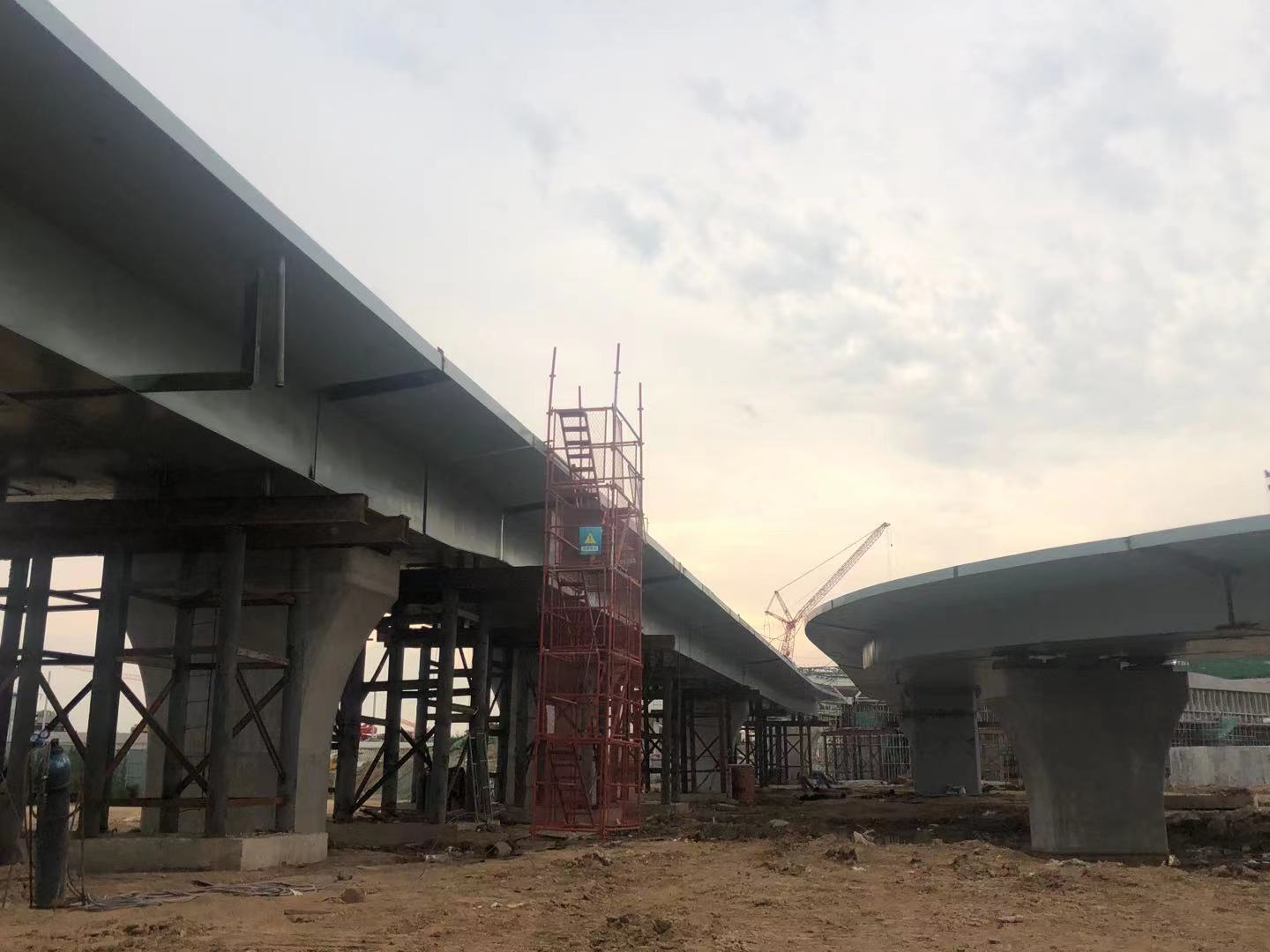 目前,东西广场六道匝道桥钢箱梁及4道防撞梁已全部安装完成,剩余2道防撞梁正在准备阶段,钢连廊安装穿插进行,期望于9月下旬完成全部匝道桥的安装工作。