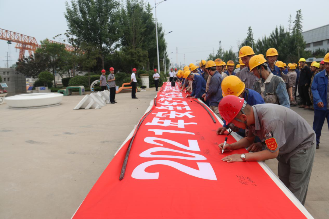 宣誓后,全体员工在安全生产月主题宣传横幅上签字,表明积极开展安全生产工作的态度和决心,许下自己的安全生产承诺。