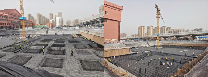 复工首日,施工现场重点开展基础钢筋绑扎与基础防水卷材施工两大核心工序。大家各司其职、默契配合,钢筋绑扎精准规范、防水施工细致严谨,以专业素养筑牢工程质量根基,为后续施工节点的顺利推进打下坚实基础。
