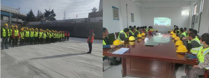 “春节复工,安全先行!”为杜绝节后放松心理,强化全员安全意识,复工当日项目组第一时间组织所有管理人员、作业人员开展“现场安全质量培训+会议室开工第一课培训”双重形式的安全教育。培训中,一方面通过会议室集中授课,围绕节后复工安全注意事项、施工现场安全规范、应急处置流程等内容详细讲解,结合典型案例敲响安全警钟;另一方面走进施工一线开展现场培训,针对基础钢筋绑扎、防水卷材施工的实操安全要点、质量要求进行面对面指导,实现理论与实践深度结合。双重培训引导大家快速收心、严守规章,从思想上、行动上筑牢安全生产防线,确保施工过程零风险、零事故。